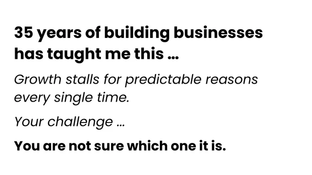 You have business experience or an existing business, but growth has stalled and you are not sure why. Revenue is inconsistent or capped, decisions sit with you, and progress feels effort-heavy which is making you frustrated and anxious. You may be approaching your first $200k or stuck below your next $200k ceiling, despite working harder than ever.
