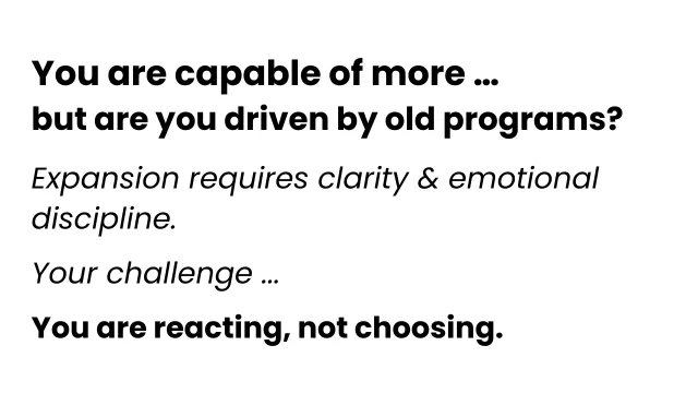 In a focused process, you uncover the unconscious beliefs and emotional imprints formed early in life, the ones shaping how you respond to money, control, confidence, and leadership today.